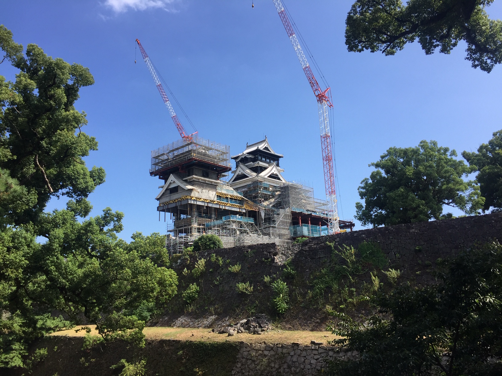 現在熊本城の中には入ることができませんが、熊本城内にある加藤神社から天守閣を見てきました。天守閣は加藤神社からが一番近く見えると思います!