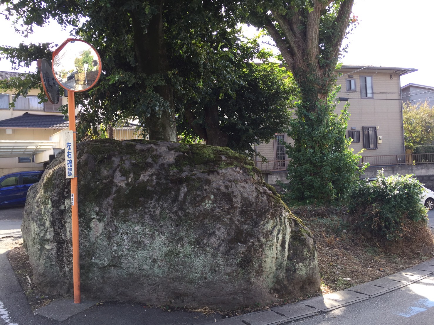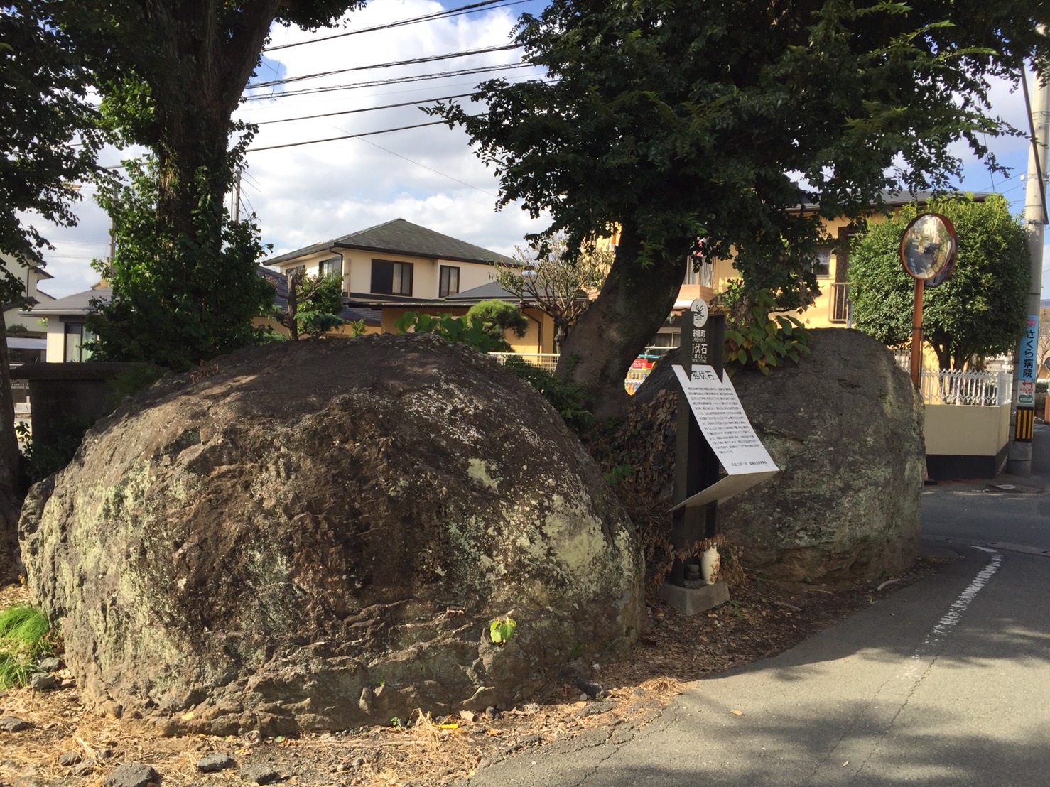 このときに残された大きな石が猫伏石です。あまりにも大きいため誰も動かすことができず、現在に至るまで横たわっているそうです。緒方