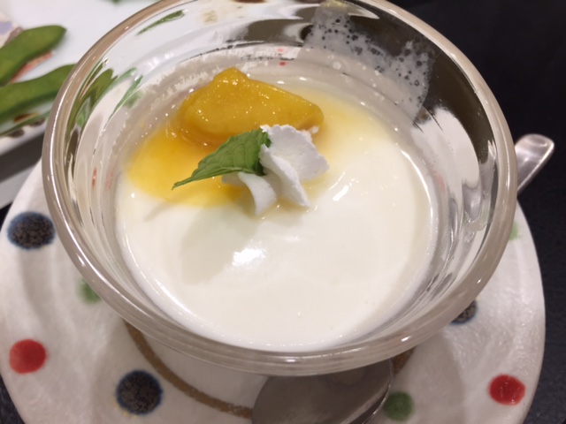 食後にはデザートも!左が牛乳プリン、右がフルーツの盛り合わせです。