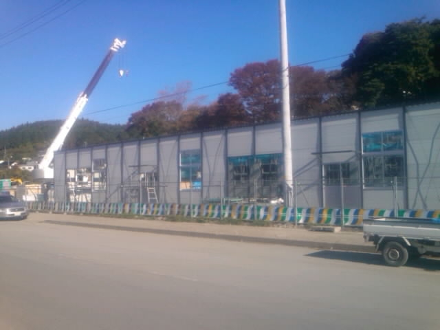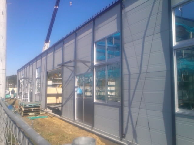 続いては、共同仮設工場の建設状況です。いよいよ形が見えて来ました。