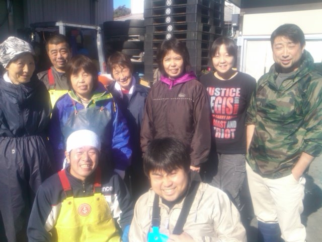 マルセン食品では、現在、練り製品やお惣菜をつくる工場と、鮮魚の加工を行う工場の2つの仮設工場を建設しています。そのうち、練り製品の工場の方は、来週あたりには引っ越しができそうです。年末に向け、マルセン食品が得意とする「揚げ蒲鉾」の製造を一日でも早く開始したい所です。もう一つの工場の方は、12月中の入居を予定しているそうです。どちらの工場も、予定より遅くなっているのですが、一番のネックは、機械の電気工事だそうです。順番待ちで、通常の倍以上時間がかかるそうです。よく他では、資材の不足が問題として挙げられますが、三浦さんたちは、8月には補助金が出ていましたので、その時点で、早めに準備ができたため、資材については確保できているそうです。そして最後は、現在、間借りしている工場の方々です!