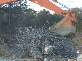 私たちの地域(南三陸町歌津馬場、中山地区)でも震災から1年10カ月が経過して、やっと基礎瓦礫の撤去作業が始まりました。