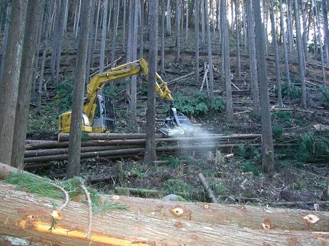 ですから、マクロ的な課題としては、施業の効率化と流通(販売出口)のところの2つが大きいと思います。効率化については、まず第一に現時点では、高性能林業機械を入れる前提となる林道、作業道が入っていないこともあり、その機械化が進んでいない。そのため、効率的な施業ができていません。