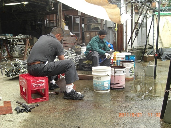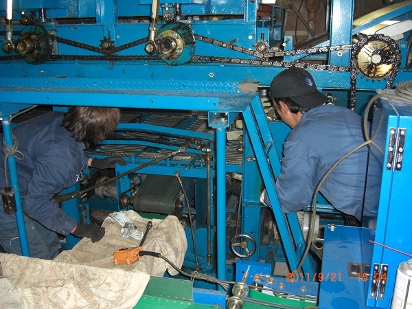 ニコニコ会話をしながら部品をていねいに洗って、磨いています。のり採取時期に確実に動きますように、宜しくお願いいたします。