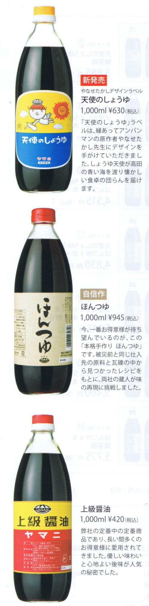 「ヤマニの醤油や、ほんつゆがないと困っちゃう」という
