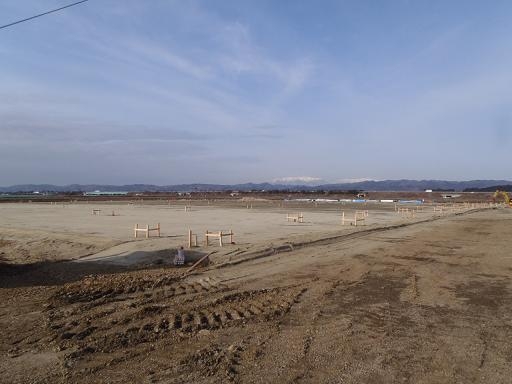 工事は、ちょうど基礎の丁張り(写真に見える木)を出し終わった造成が終わり、今日からは、先週より行なっている基礎杭の施工の継続と、いよいよ建物施工が開始されるとのことです。引き続き、工事は急ピッチで進み、4月中旬には栽培ハウスが完成し、5月以降の初出荷を目指しています。