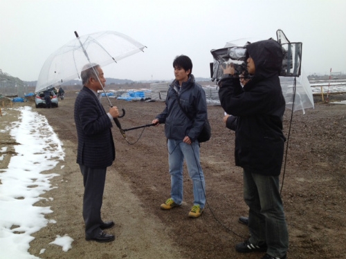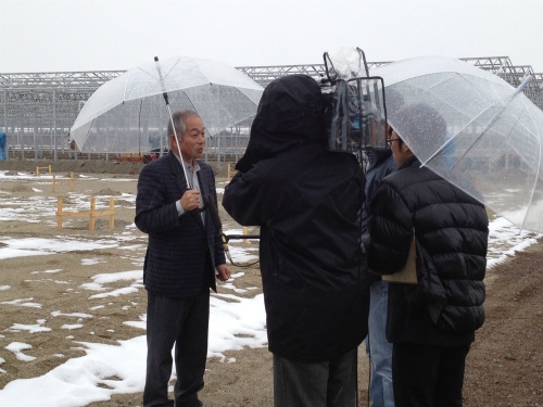 先日はTV(NHK)の取材で、福島県白河の水耕栽培場に行って来ました。現地ではイタリアンパセリが均一に見事に生育しており、更に自信を深めることができました。私たちも、一日も早く生産をと思っております。今後も色々な方に相談等をし、一歩一歩進む所存でおりますので宜しくお願い致します。(写真は取材の様子。NHKの番組にて、新しい農業への挑戦の様子を放映していただきました。)