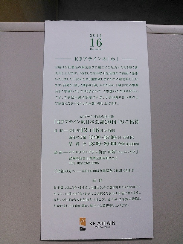 1つ目は「KFアテイン東日本会議2014」についてです。