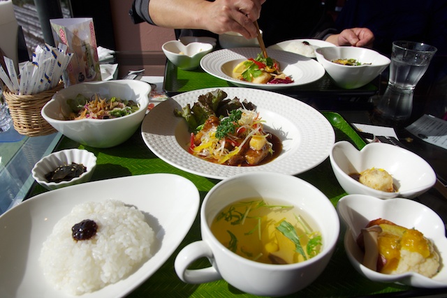 鹿児島県霧島市の福山地域は、桜島を一望できる風光明媚な「黒酢の里」として有名です。今日は、数ある黒酢メーカーの中でも、有機農法で栽培した玄米を原料に、昔ながらの製法で黒酢をつくっている福山黒酢株式会社さんが運営しているレストランでランチを食べました。