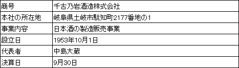 | 営業者 | 千古乃岩酒造株式会社 | |||
