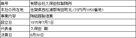 | 営業者 | 有限会社久保田稔製陶所 | |||