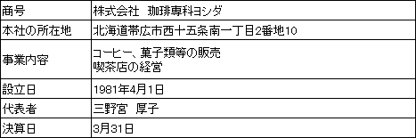 | 営業者 | 株式会社 珈琲専科ヨシダ | |||