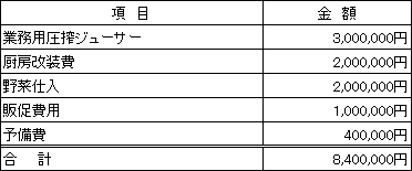 営業者は会社設立8年目の会社です。過去2年間でスイーツを使ってカフェ事業の運営を行い、実績を積み上げてきました。その実績とノウハウを活かして当期よりコールドプレス事業に参入し、以下の施策を実施することで売り上げを伸ばしていく計画です。