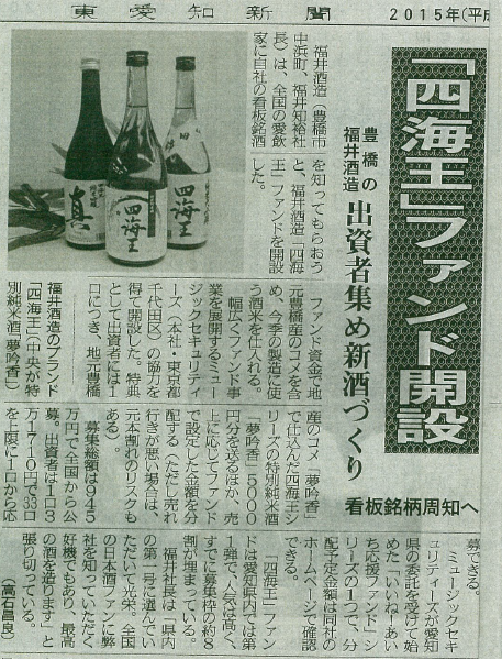 | 本匿名組合契約名称 | 福井酒造「四海王」ファンド | |||