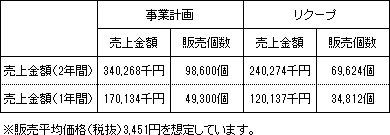 事業計画上の本匿名組合契約会計期間(2年間)の累計売上金額(税抜)は340,268千円(年平均売上金額170,134千円)であり、本匿名組合における累計リクープ売上金額(税抜)は240,274千円(年平均売上金額120,137千円)です。