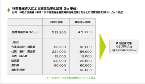 美作森林組合への施業支援と木材販売支援それぞれで(株)トビムシが受取る収入は以下の通りです。1.美作森林組合への施業支援