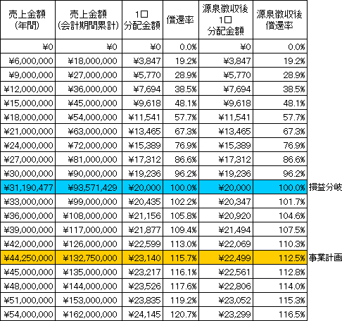 (1口20,000円の出資の場合)