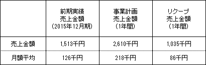 事業計画上の本匿名組合契約会計期間(1年間)の累計売上金額(税抜)は2,610千円(月平均売上金額218千円)であり、本匿名組合における累計リクープ売上金額(税抜)は1,035千円(月平均売上金額86千円)です。なお、営業者の前期(2015年1月~2015年12月)の売上金額(税抜)は1,513千円です。