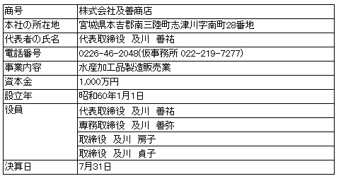| 本匿名組合契約名称 | 及善かまぼこファンド | |||