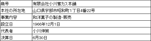 | 営業者 | 有限会社小川蜜カス本舗 | |||