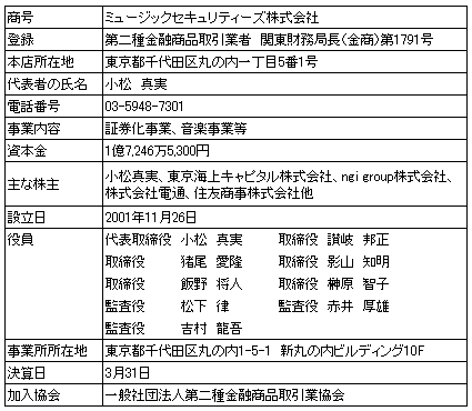 | 取扱者 | ミュージックセキュリティーズ株式会社 (第二種金融商品取引業者 関東財務局長(金商)第1791号) | |||