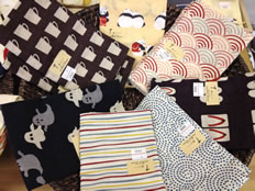 ・現在、布製品としては、ふろしき・手ぬぐいなどが中心。今後は、マフラー・Tシャツなど一部、身に着けるものへの展開も広げる予定です。販売方法としては折込チラシ、新聞広告、ホームページでの宣伝から行い、2012年中には、ネットでの通販の開始も目指します。