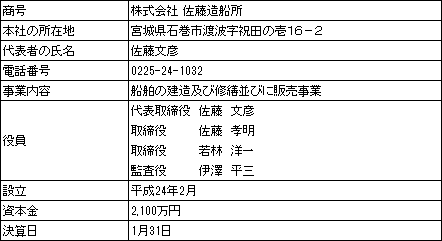 ・今回の震災により、当社と同様の地域における沿岸漁業向けの造船所数社が廃業しましたため、地域の漁民の受け皿として、新規の顧客の拡大を図っていきます。