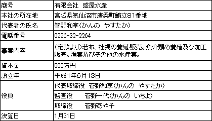 | 本匿名組合契約名称 | 盛屋水産つなぎ牡蠣ファンド | |||