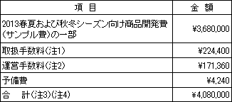 2013年度より、商品種類を現在の約100種類/年から約140種類/年へと拡大させます。 商品種類の拡大は課題と認識しておりましたが、健全なブランド運営上、資金面での制約がありました。 今回ファンドを通じて皆様から託していただいた資金は当該商品開発費に充てさせていただき、JUN OKAMOTOを次のステージへ成長させていきたいと考えております。 |