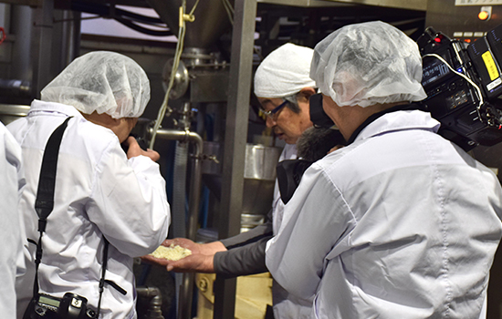 美味しい栃尾の油揚げを提供するためには、製法や素材に加えて、優れた職人の技量が必要です。ふんわりと大豆の香りが広がる豆撰の油揚げづくりは、「豆」選びから始まります。創業以来、大豆にこだわり続けてきた豆撰だからこそ、そして長年の経験が積み重なってきたからこそ、職人の目は養われ、最上の大豆を見抜きます。