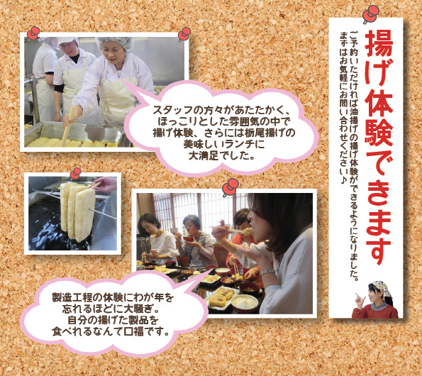 今回のファンドでは、この栃尾の油揚げの魅力を最大限に生かせる「揚げたて」をより多くの方々にお愉しみ頂くために、直売所兼生産工場内にイートインスペースを設けるための費用を募集します。投資家特典として最高品質の商品セットをお届けしますので、是非この機会に本物の栃尾の油揚げをご堪能ください。