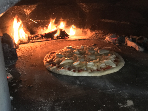 夕方から始まり、よい雰囲気の中、ピザ釜での焼き立てピザ、そして花房の もろジェノ生パスタ。