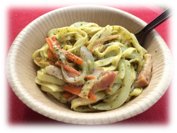 でもなぜパスタを? それは、HANAFUSAのもろジェノを使って、こんな料理も作れますというプレゼンテーションでもあります。