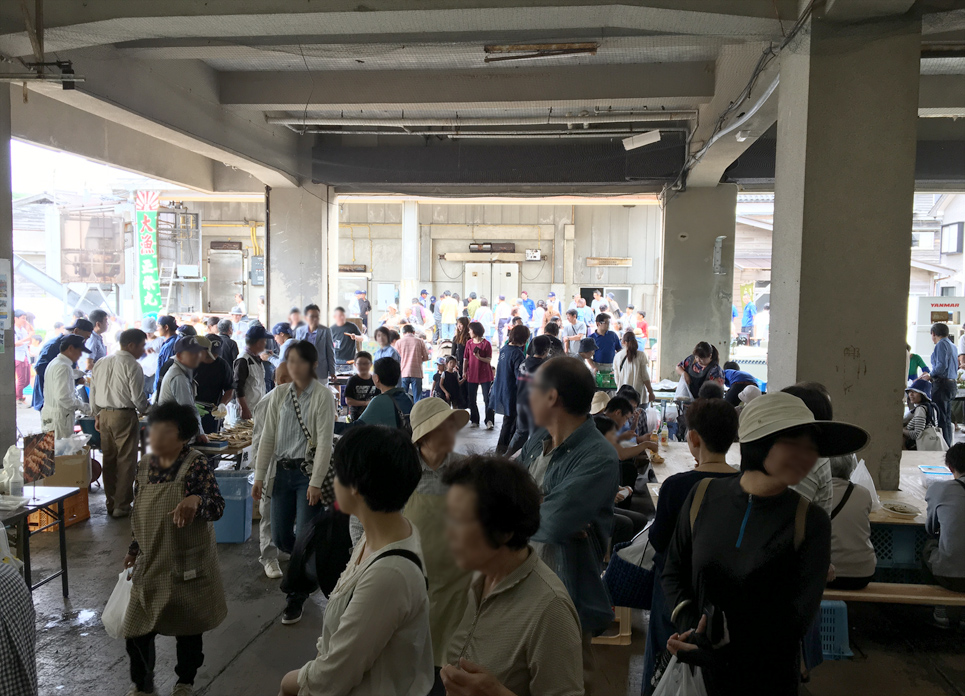 竹野漁港で行われ、いろいろな食べ物や、新鮮な野菜の即売などがあり、いか漁船でのジオパーク遊覧や、釣り体験も。