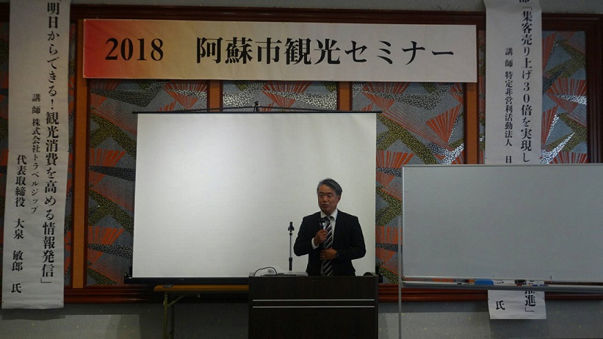 【阿蘇市観光セミナー】代表の稲吉が、阿蘇市観光協会会長として登壇しました。