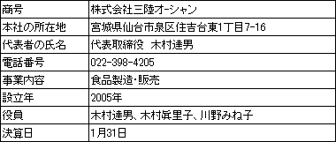 営業者の販売する水産加工品の製造元において津波により商品製造に必要な独自の技術や機材が流出し、商品の品質確保・維持ができず、顧客が減少するリスクがあります。また、津波や放射能などの影響によって水質および水産物の生育環境が変化し、商品の品質が維持できない、あるいは製造できない状況が生じるリスクがあります。