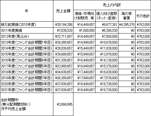 (1) 養殖事業は、震災前程度の事業規模への復旧に止め、卸売事業よりも利益率の高い個人向けの商品販売事業の割合を増やし、将来的にはインターネット販売事業等を拡大していく予定です。まずは、地元の宮城を中心に、販路を確保していきます。既に道の駅やデパート、ホテル等において定期的に直販事業を開始しております。今後は、元料理人であった藤田純一(営業者の後継者で、現在も専ら営業者の事業に従事)の経験を生かし、水産加工品の新商品を開発し、かかる新商品をインターネットを通じて個人向けに販売していきます。