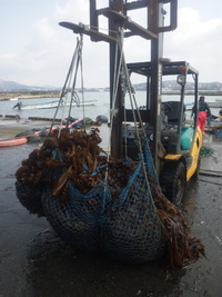 | 実は、震災直後の昨年4月には、セキュリテ被災地応援ファンドをご紹介いただいており、ぜひ当社も参加させていただきたいと思っていました。ただ、その時は、海の回復の見通しが全くつかず、水産物がいつごろ取れ始めるかわかりませんでした。そんな不確定な状況の中で出資して頂くのは、当店の理念に反していると言う事で一度は辞退させて頂きました。しかし、海の回復も順調で、今年はわかめがとれ、タコが取れ始め、秋にはサケも戻ってくる予定です。冬にはアワビを捕り、また来年の春にはわかめやふのり、マツモなどの海藻が収穫できます。少しずつですが、地物の海の幸も取れ始めたので、当店の新しい出発と共に、ファンドの参加を決めさせて頂きました。 震災からの1年は、藤田商店としてではなく、地元である気仙沼・階上地区の漁師が一丸となって一つのグループを組み、共同でわかめ作業をしてきました。そのおかげでわかめ養殖を再開する1歩を踏み出すことができました。 |