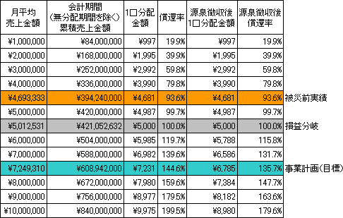 | 予想リクープ 累積売上金額 | 421,052,632円(税込)(無分配期間を除く。) | |||