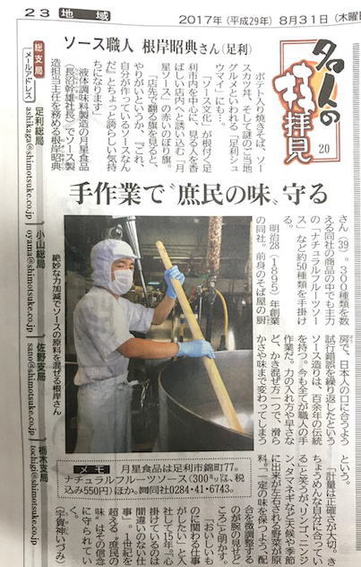 月星食品の職人が新聞に掲載されました ♪ ♪