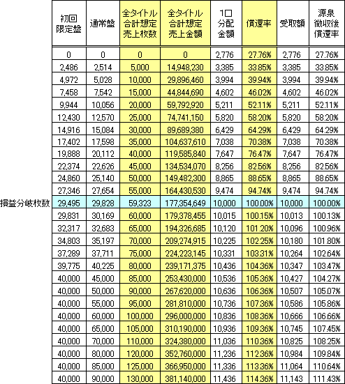 | 対象商品 | アーティスト名 | 作品名 | 発売予定日 | 損益分岐枚数 |
