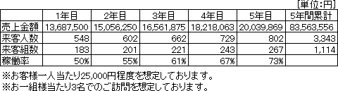 86,700部の0.212%程度の契約成立で183組(1組3人と想定した場合549人程度)が来客し、初年度の稼働率50%程度を達成できます。事業計画は年間約10%の成長目標で計画しております。