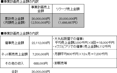2013年10月のフードセレクションの展示会以降、催事の出店要請を多数いただいています。現時点で、大丸松阪屋から1年間で全国の店舗で9回の催事の出店計画(1週間~10日)を打診されています。そのうち2014年2月の大丸札幌店での催事が具体的に決まっており、その他の店舗や時期は現在協議中です。事業計画上、9回の平均売上金額を200万円/回としています。また、千葉県浦安市舞浜にあるイクスピアリから催事の打診(1ヶ月程度)もあり、2014年5月以降で実施し、4,112千円/回程度の売上を見込んでおります。それ以外にも催事の打診をいただいております。