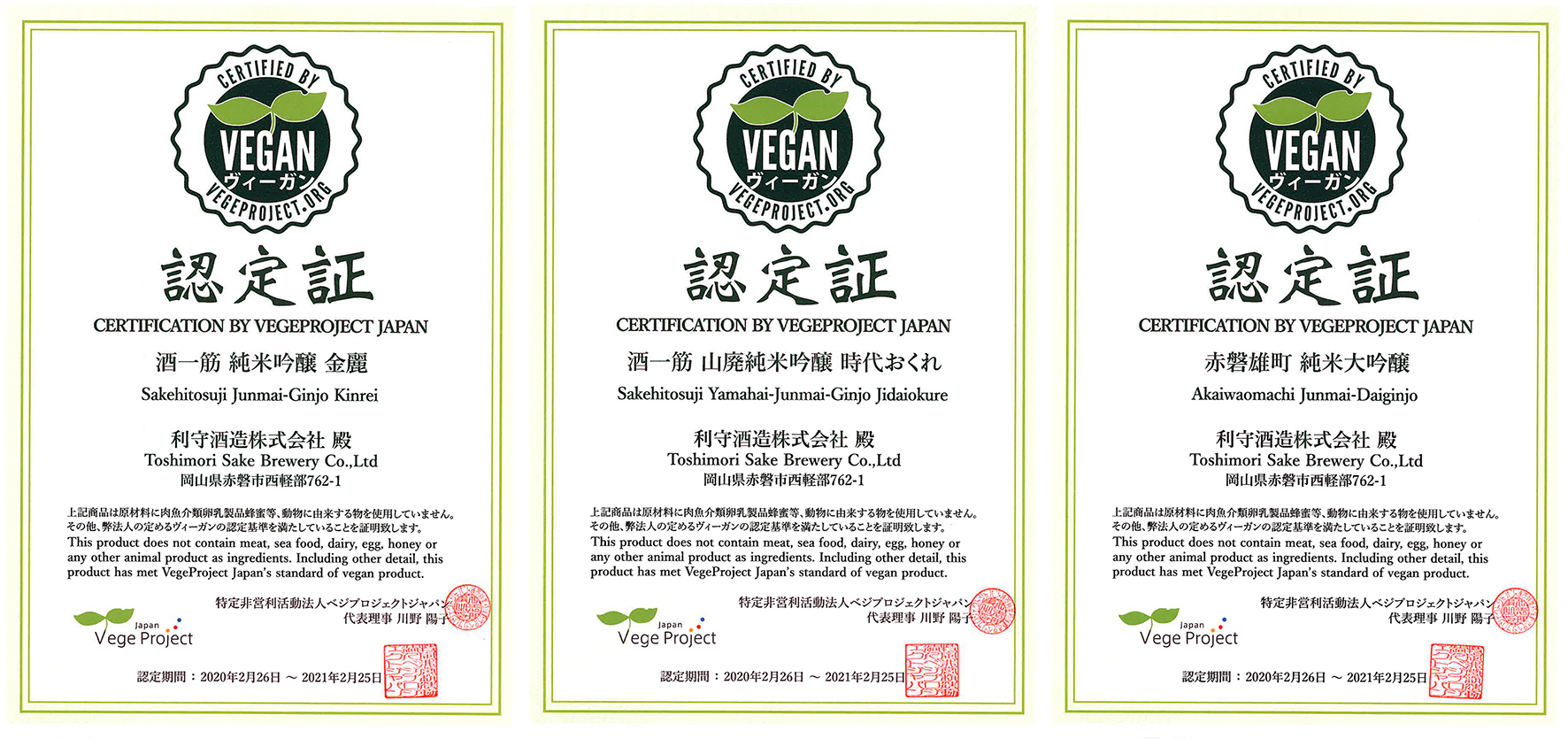 ヴィーガン認証取得