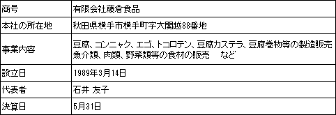 | 本匿名組合契約名称 | 藤倉食品 秋田豆富かすてらファンド | |||