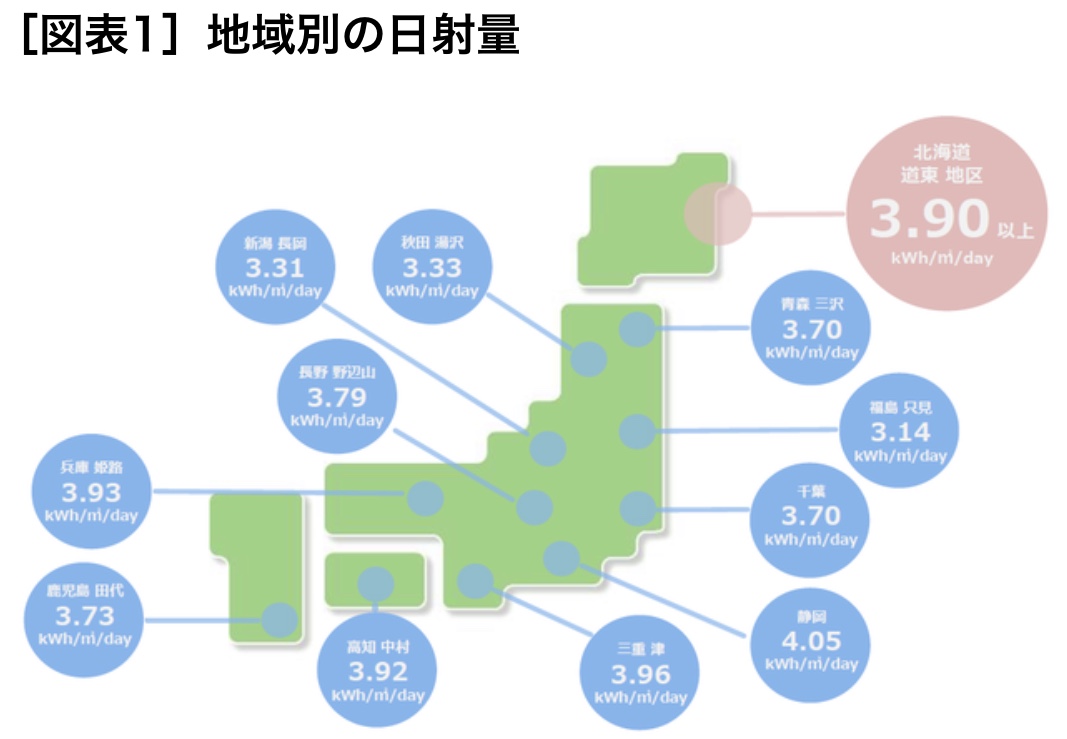 一方、気温の低さは発電にさほど影響がないことがわかっており、猛暑が続く関東や関西に比べて北海道の方が発電効率が良い場合が多々あります。