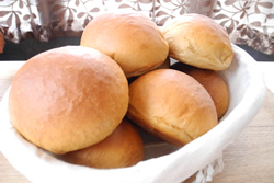 ![]() 角食パン 1斤950円(税込) 1枚40gあたりの糖質量 ハード3.1g/ソフト2.4g | ![]() プチパン 8個入り950円(税込) 1個あたりの糖質量 ハード3.4g/ソフト2.4g |