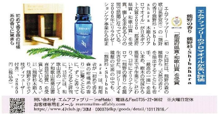 天然の香りでリラックス 「熊野の香り」 & 「和アロマ」紹介