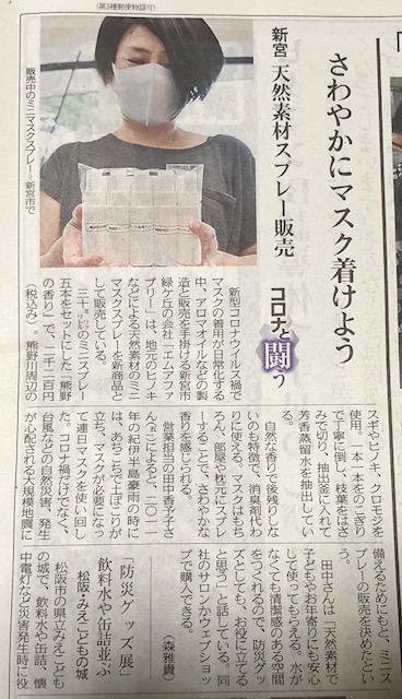 「さわやかにマスク着けよう 新宮 天然素材スプレー販売」