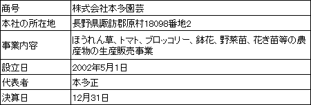| 本匿名組合契約名称 | 八岳高原水耕ほうれん草トマトファンド | |||